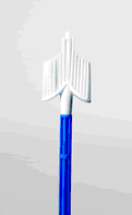 Instrucţiuni de recoltare – După vizualizarea colului uterin se inseră partea centrală a periuţei în canalul endocervical astfel încât marginile mai scurte să vină în contact cu exocervixul. De obicei nu se recomandă ştergerea colului uterin înainte de recoltare, dar la nevoie se poate tampona uşor cu un tifon7. Cu partea centrală fixă, se roteşte complet periuţa în sensul acelor de ceasornic de cinci ori 5.